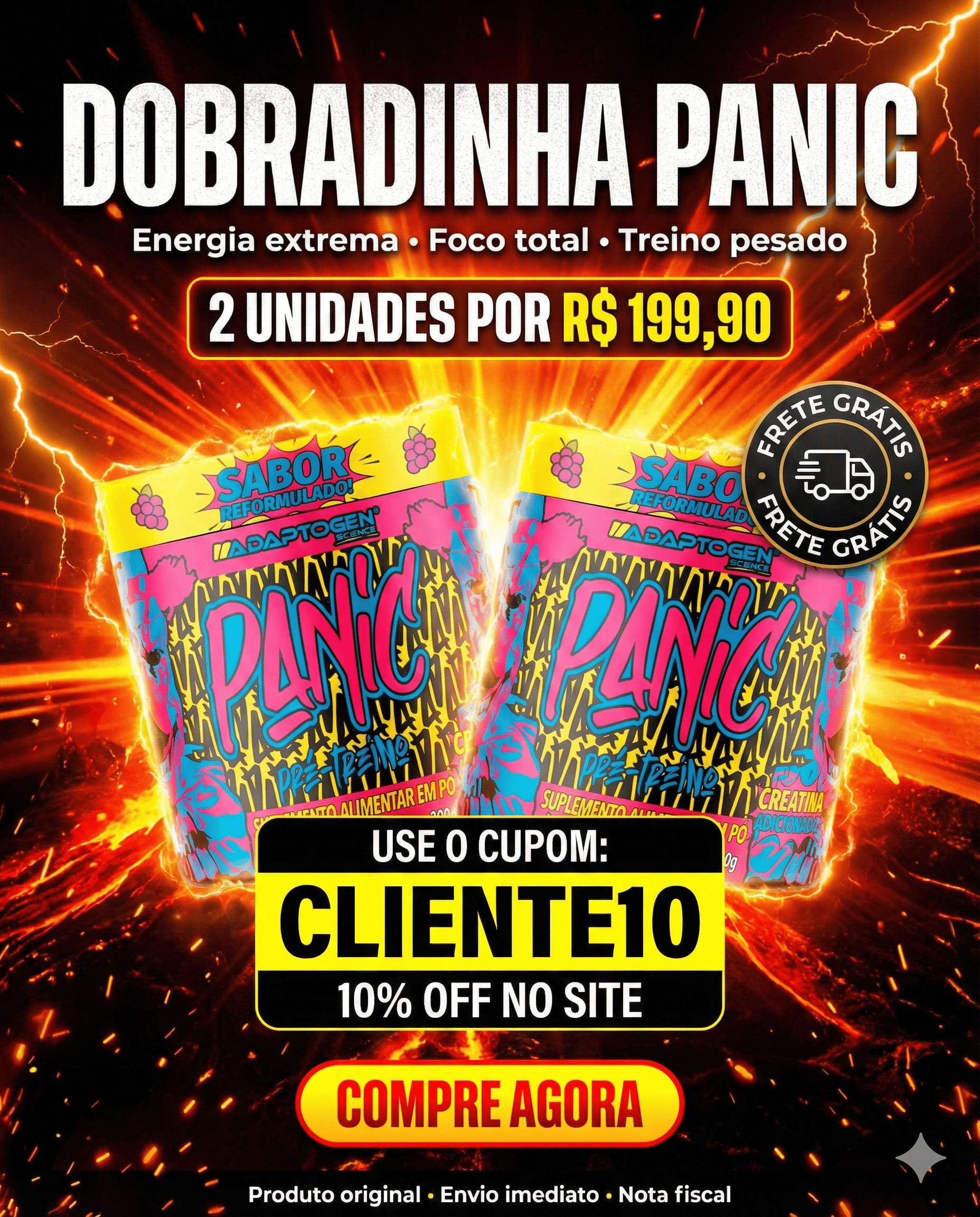 O Panic Pré-Treino Adaptogen é um dos pré-treinos mais fortes do Brasil.